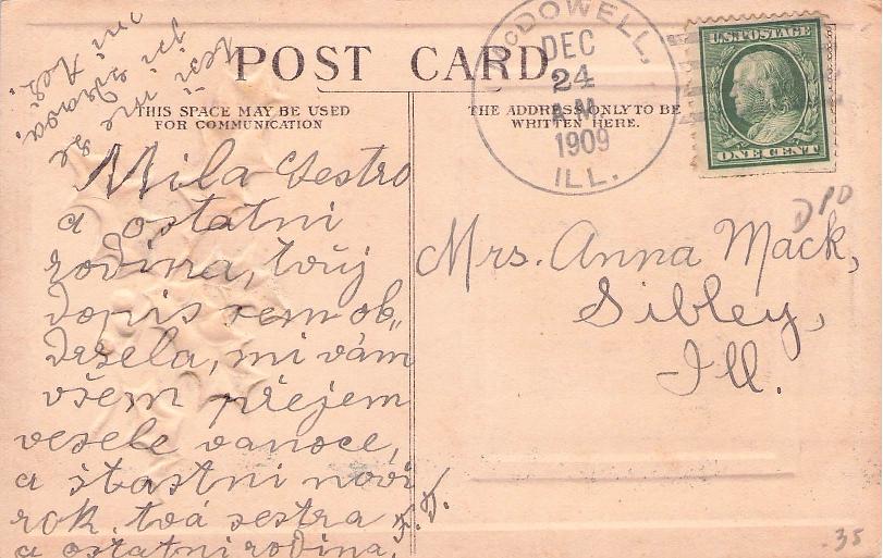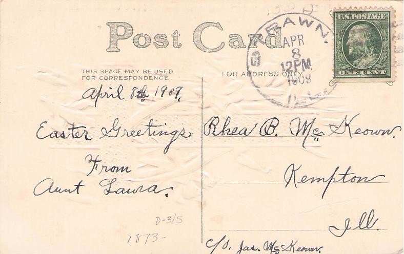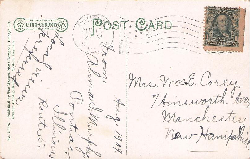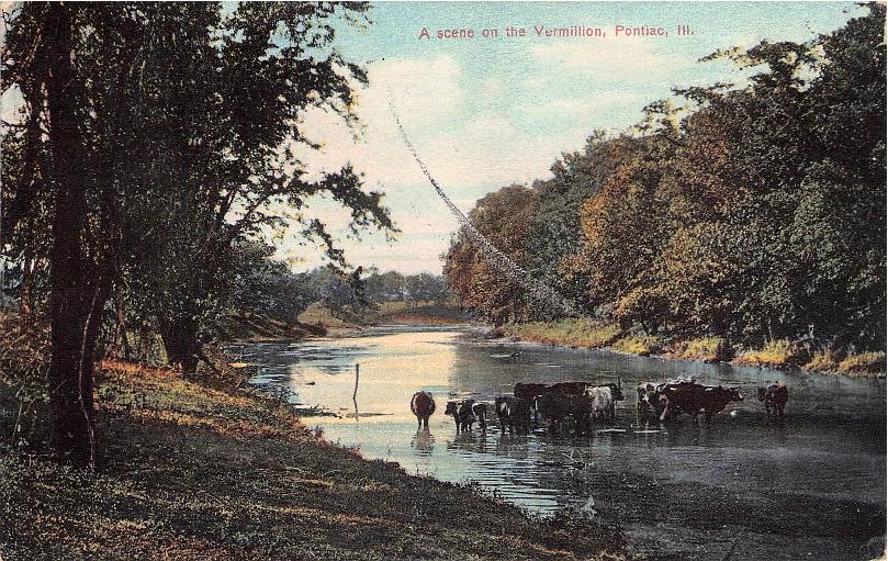 - Pontiac 1890 cds on cover with stamp missing, original contents; 1909 Flag cancel on post card of cows in Vermillion River.