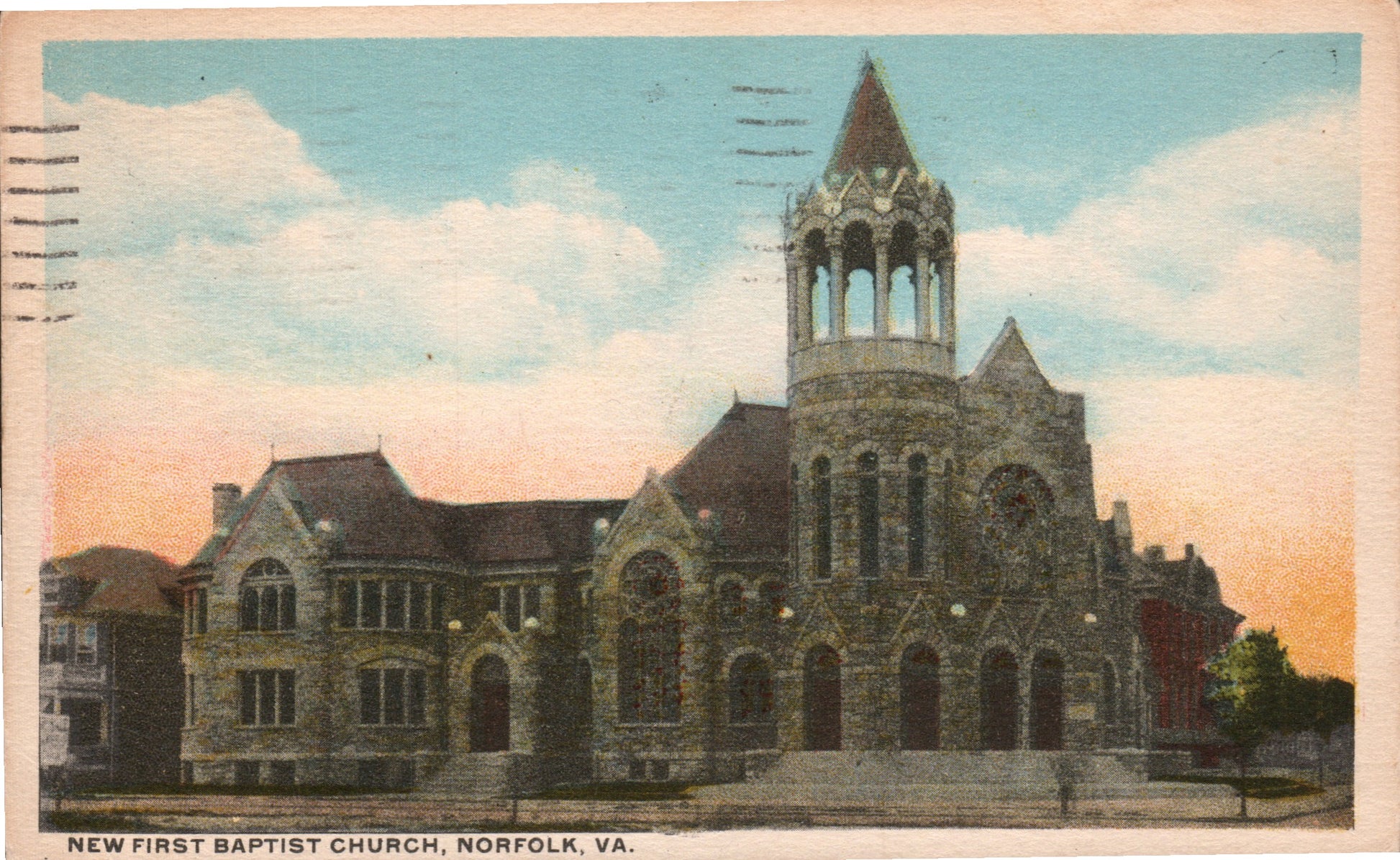 Post cards: “Ferries Crossing Harbor at Night” [c.1910]; “Norfolk Shipbuilding and Dry Dock Co.” [linen]; Harbor view [1926]; “Handling Cotton at Wharves” [c.1910]; Lorraine Hotel [c.1920]; Monticello Hotel [linen]; Monticello Hotel lobby [c.1910]; Nansemond Hotel [linen]; U.S. Naval Hospital [1920s?]; Custom House [c.1920]; Norfolk Co. Court House [c.1910]; ; Court House [2 views, one c.1910, one 1911, corner damage]; City Hall [c.1920]; Commercial Place, Confederate Mounument [1920]; Ghent Club [c.1920]; First Baptist Church [1920]; Old St. Paul’s Church [B&W]; Norfolk Municipal Gardens entrance [chrome]; Botanical Gardens [chrome, 1977]; Lafayette Park [1911]